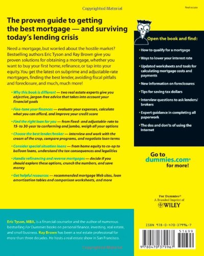Mortgages For Dummies Tyson Eric Brown Ray 9780470379967 Books Amazon Ca